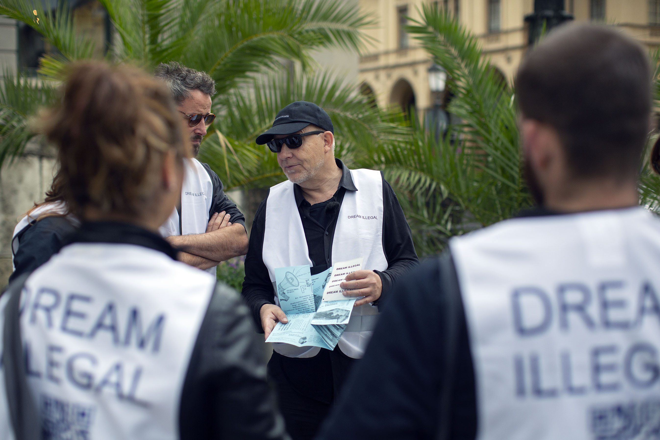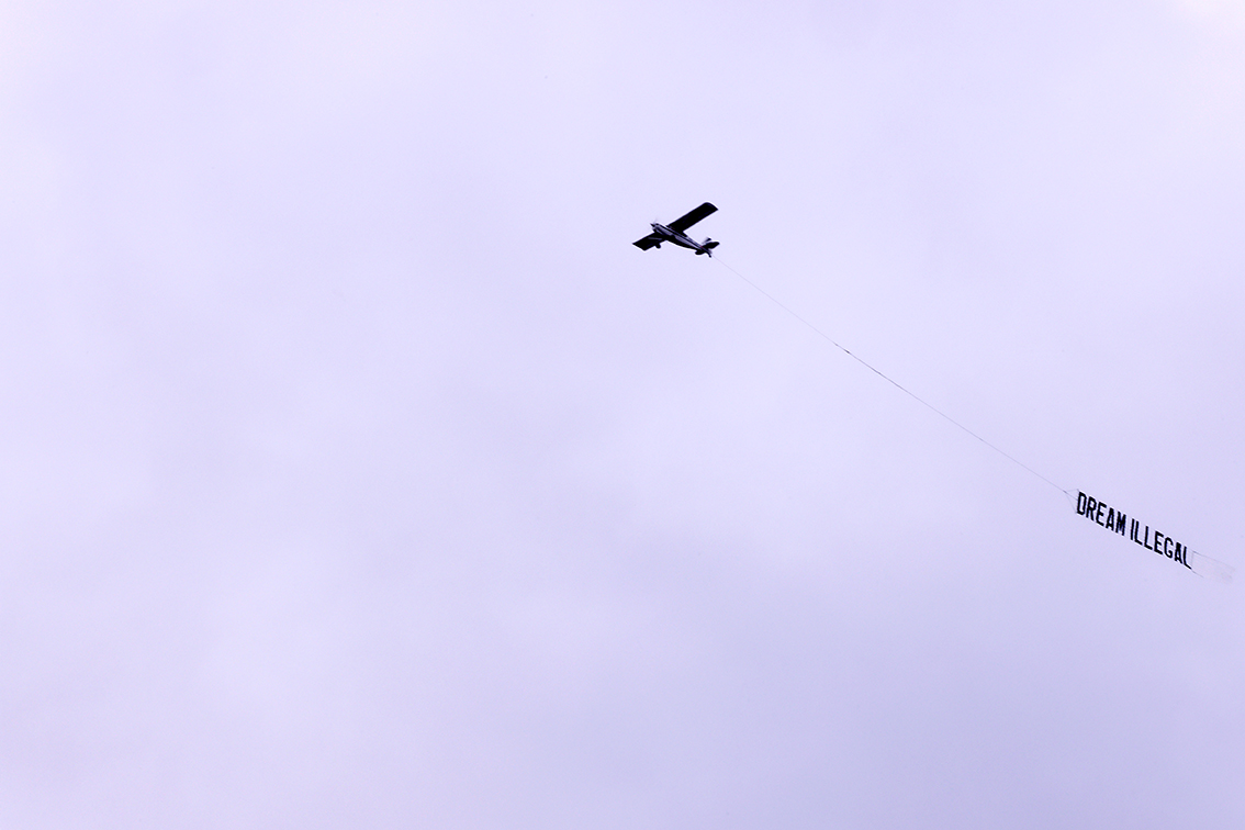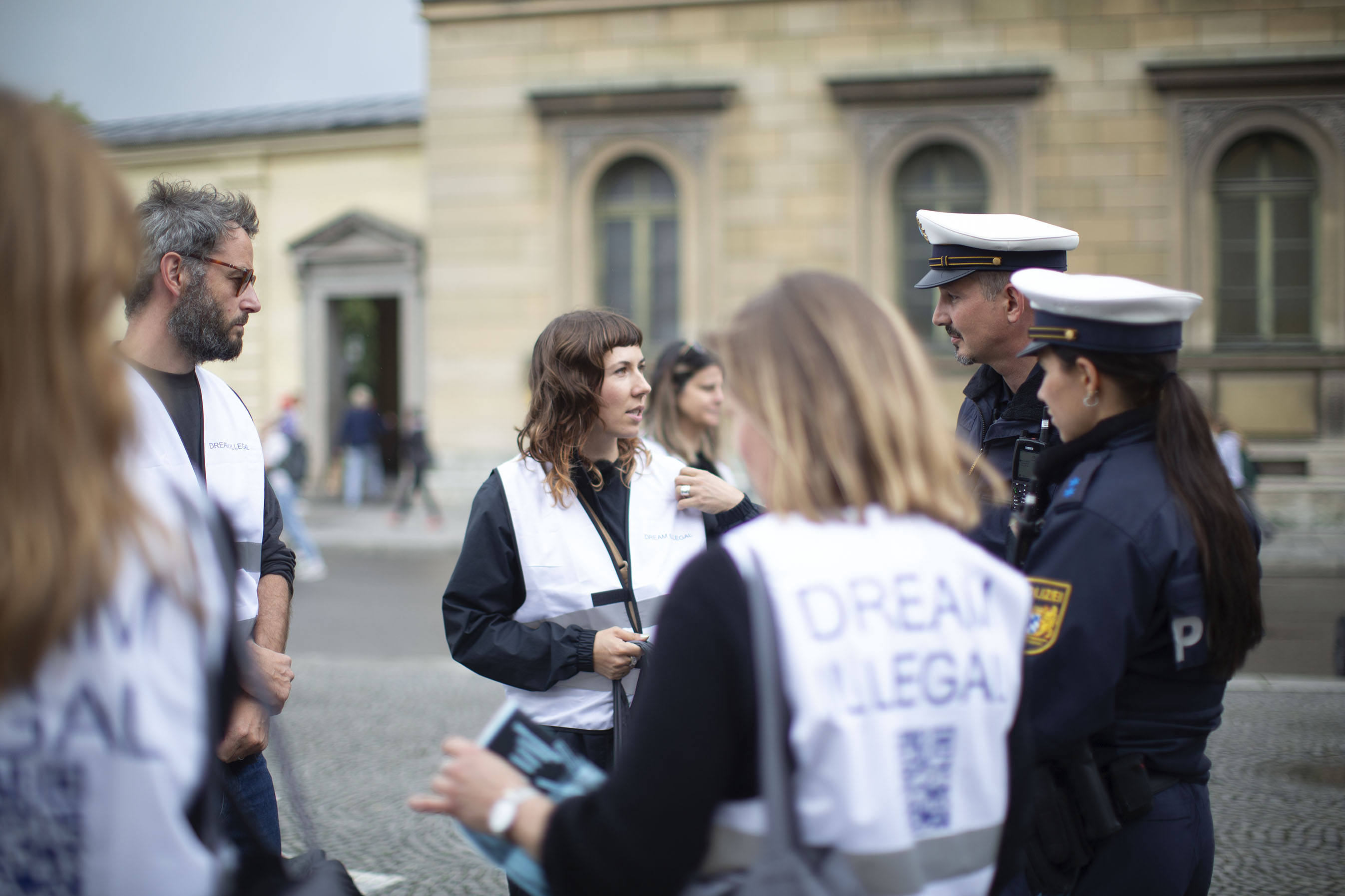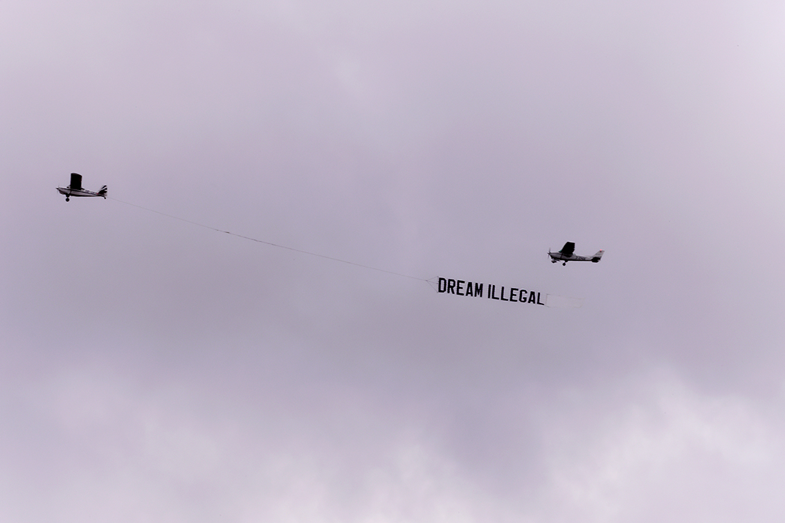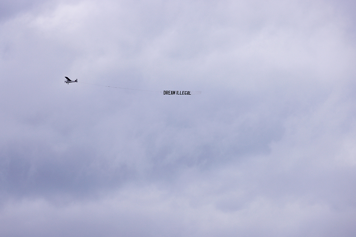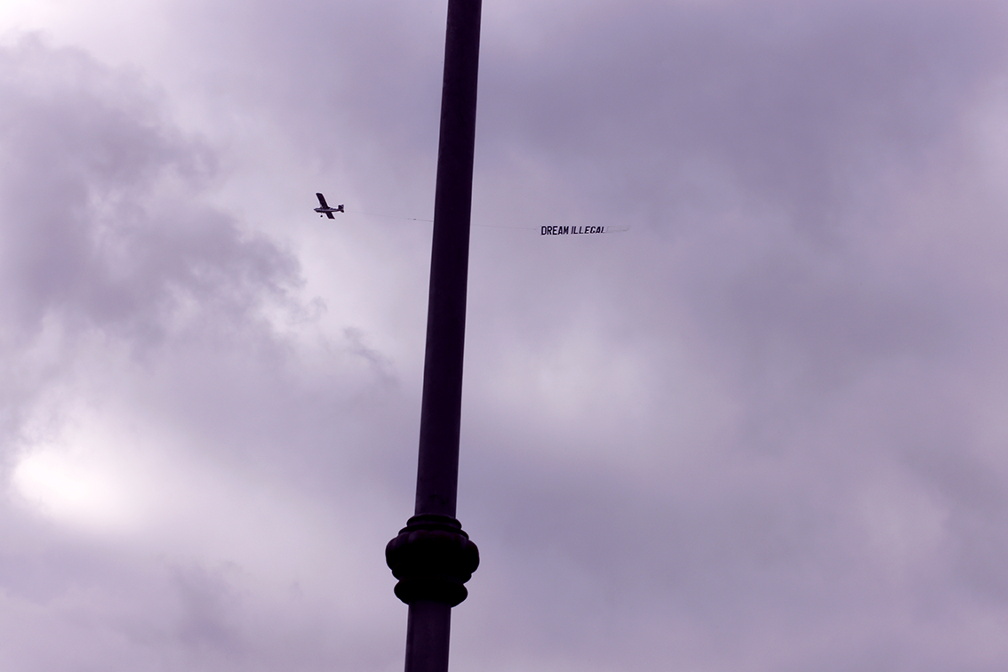 To this end, on 18 October 2025, between 12 noon and 2 p.m., a banner flight with the words 'DREAM ILLEGAL' could be seen above Munich city centre. This is an artistic intervention by the Arcadian Ambassador H.E. Peter Kees, the EMBASSY OF ARCADIA, in cooperation with PLATFORM Munich.