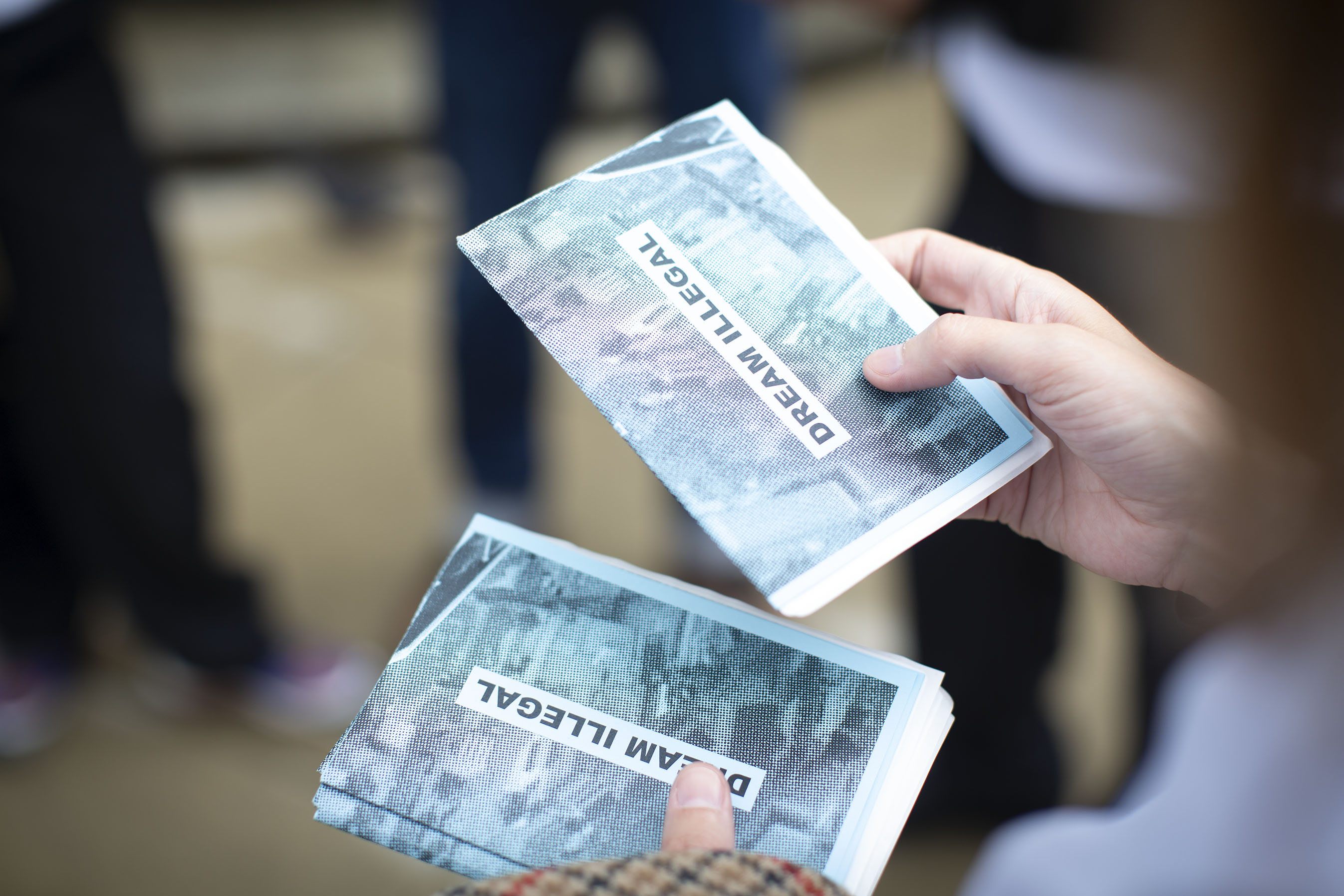 Auf Grundlage von Gesprächen zwischen dem Arkadischen Botschafter und Akteur*innen aus den Bereichen Kunst, Aktivismus und Urbanismus, wurden Flugblätter (Zines) herstellt. Die Aktion bereitet angesichts des politischen Rechtsrucks methodisch auf Zukunftszenarien vor, in welchen die demokratischen Handlungsspielräume der Meinungsfreiheit weiter eingeschränkt werden könnten. DREAM ILLEGAL versteht sich dabei als poetischer Aufruf gegen das Verstummen von Hoffnung, Vorstellungskraft und Utopie – gerade in einer Zeit wachsender Instabilität und gesellschaftlicher Verhärtung.